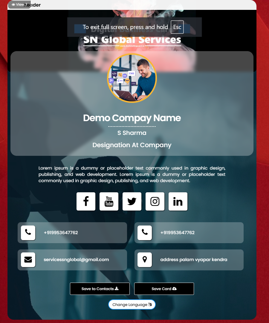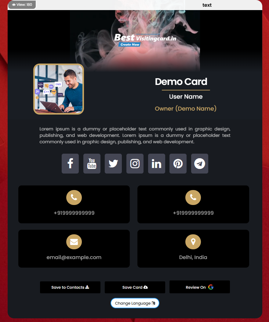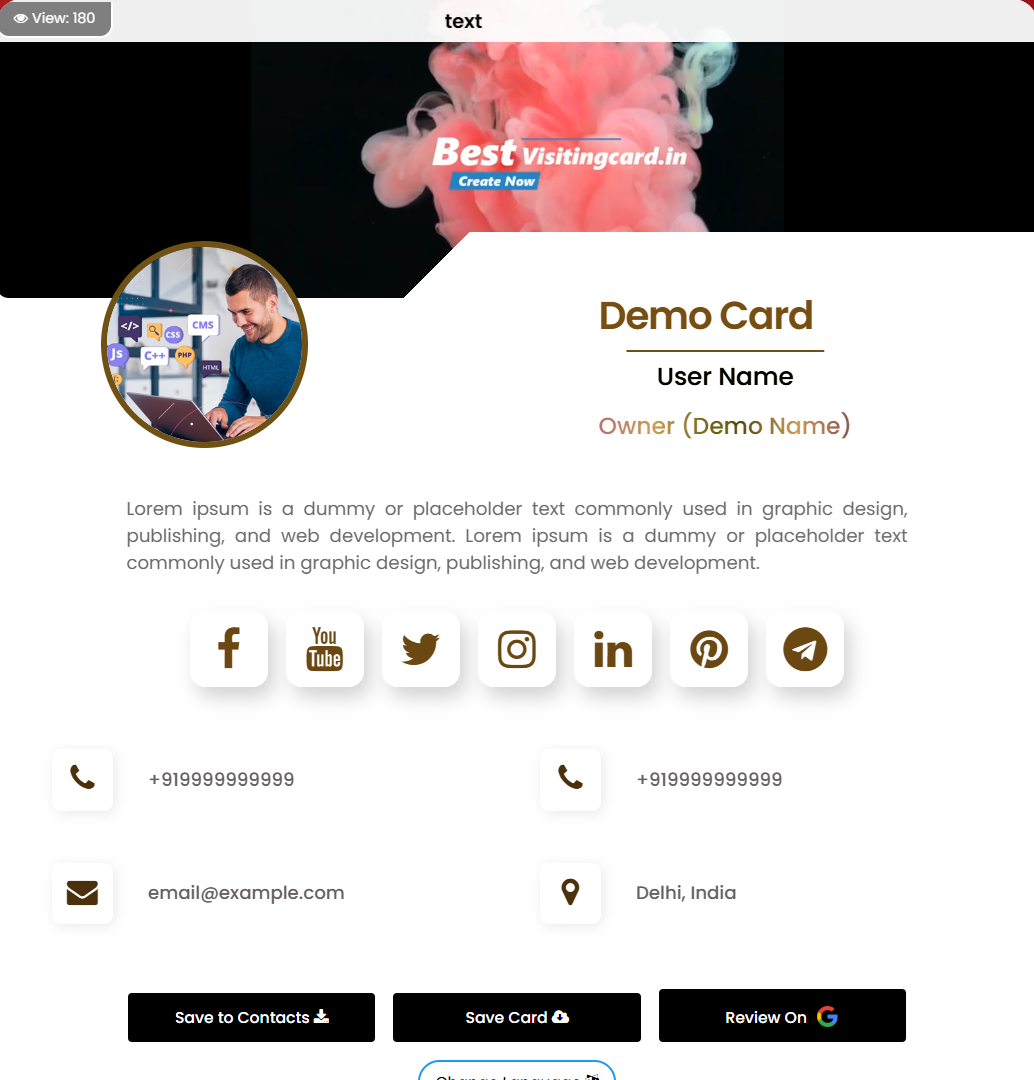 Create your account and Design your digital visiting card.