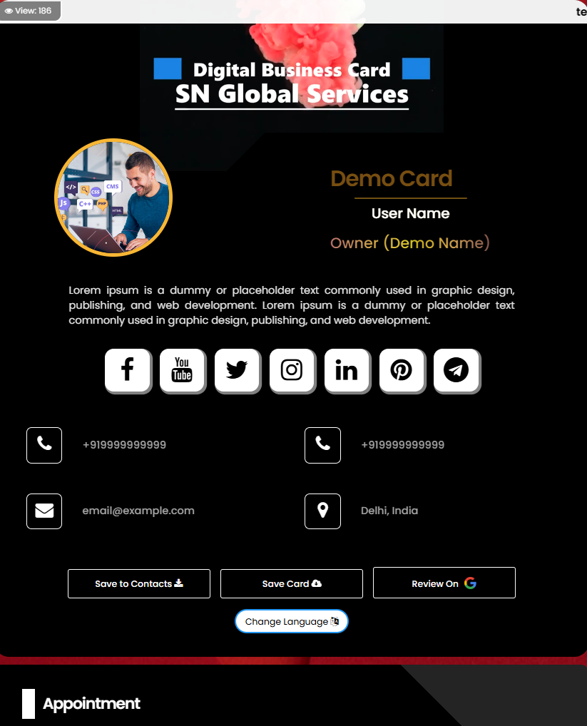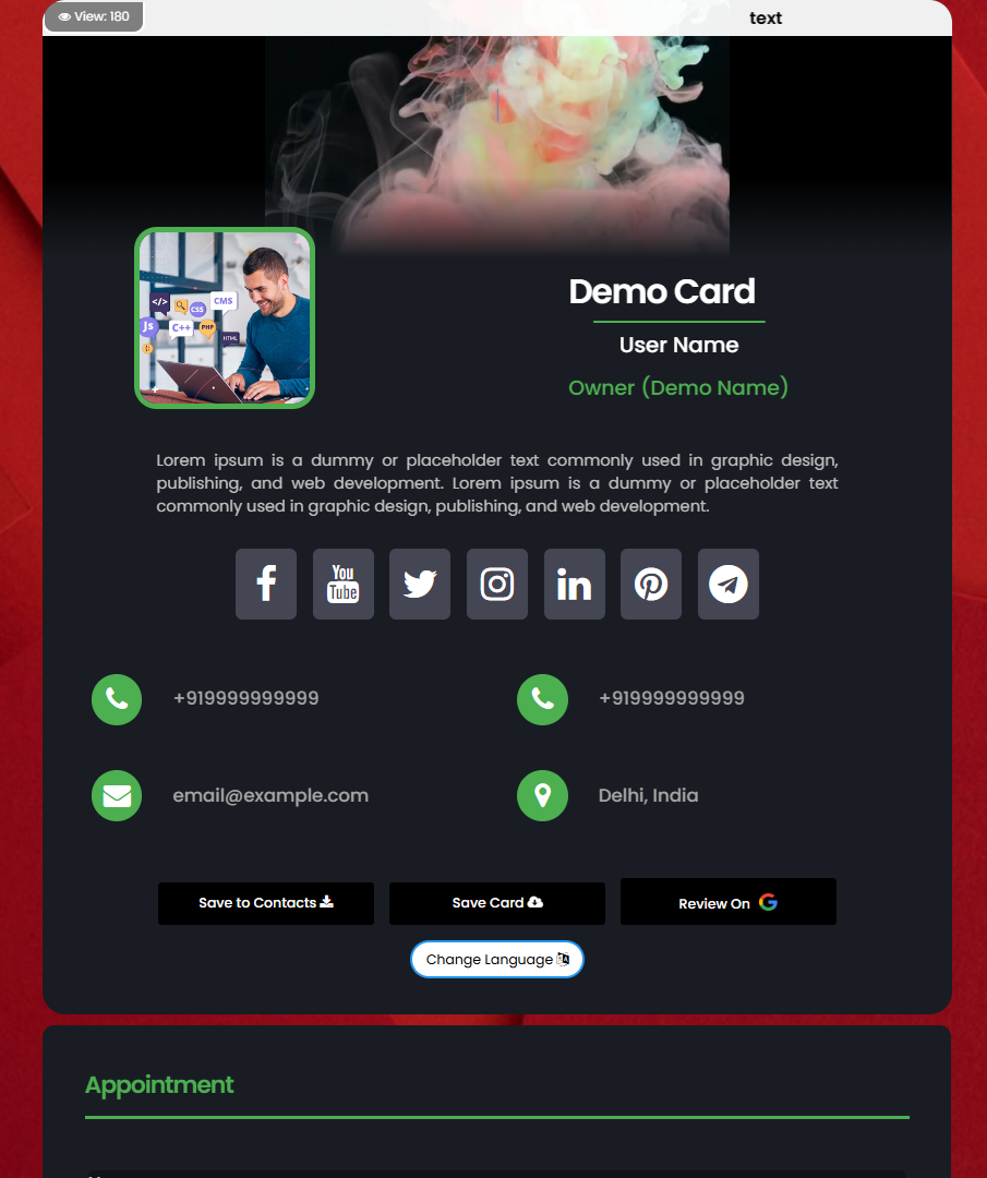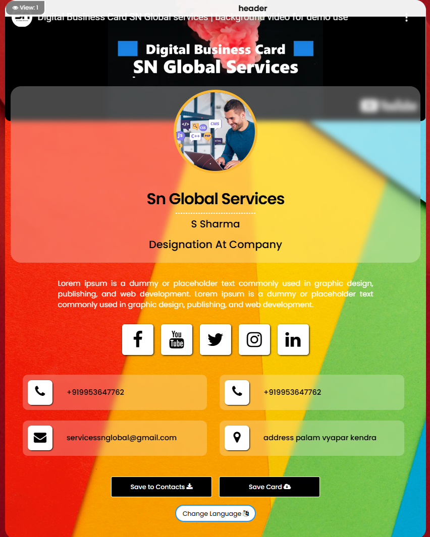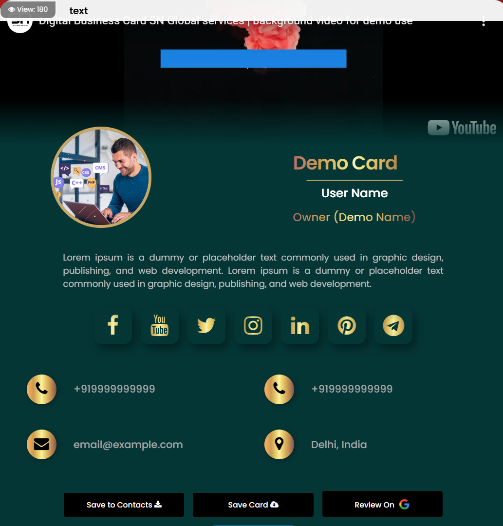 Create your account and Design your digital visiting card.